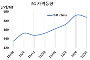 CFR China 488달러로 5달러 하락 … 증설·재가동으로 공급과잉