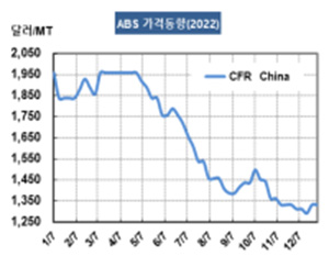 표, 그래프: <ABS 가격동향> <화학저널 2023/01/04> |