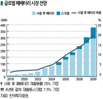 SNE리서치에 따르면, 세계적으로 폐기되는 전기자동차와 하이브리드자동차(HV)는 2025년 54만대에서 2030년 414만대, 2040년에는 4636만대로 급증할 것으로 예상된다.