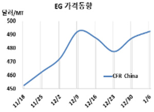 CFR China 493달러로 5달러 상승 … 업‧다운스트림은 하락