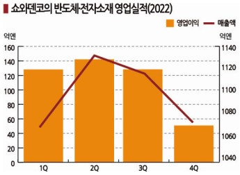 반도체‧전자소재 사업은 이미 3분기에 영업이익이 130억엔으로 전년동기대비 6.4% 감소했고 4분기에도 52억엔으로 더욱 줄어든 것으로 추정하고 있다.
