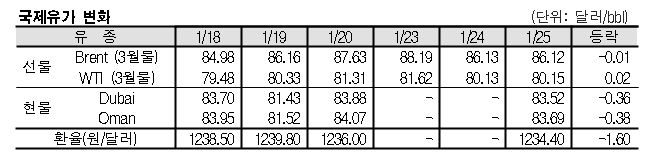 브렌트유, 86.12달러로 0.01달러 떨어져 … 두바이유는 83.52달러