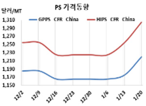 GP, CFR China 1220달러로 45달러 치솟아 … HIPS, 1300달러 돌파