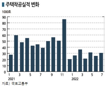 국토교통부에 따르면, 2022년 8월 주택착공 호수는 26만1193호로 전년동월대비 24.9% 하락했으며 건축착공면적 역시 7739만입방미터로 10.3% 감소했다. 건축 및 토목 수주건수는 큰 변화가 없는 것으로 나타났다.