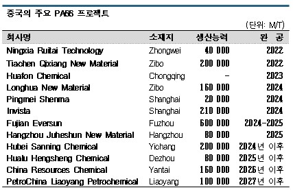 그러나 중국 정부가 2025년까지 PA66 생산능력을 200만톤 이상으로 4배 확대하는 것을 목표로 투자를 지원하고 있어 앞으로도 신증설 경쟁이 이어질 것으로 예상된다.