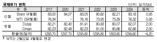 2월24일 국제유가는 러시아산 공급 축소 우려를 타고 상승했다.