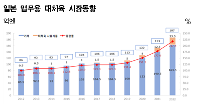TPC Market에 따르면, 일본은 업무용 대체육 시장이 2021년 153억엔으로 전년대비 17.7%, 2022년에는 187억엔으로 22.2% 확대됐다.
