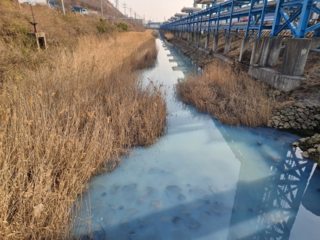 3월10일 오전 교량공사 중 발생 … 인근 하천으로 흘러들어 오염