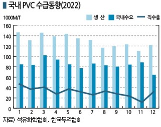 PVC는 2022년 글로벌 정세 불안에 따른 원료가격 폭등과 수요 감소로 타격을 받아 생산량이 감소세를 나타냈고 생산기업들이 가동률 감축 및 재고 조정에 나섰으나 적자를 면치 못한 것으로 파악되고 있다.