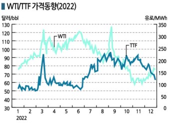 앞으로도 미국이 기준금리를 계속 인상해 5%를 상회토록 조정하고 2023년에는 경기침체가 심각할 것으로 예상된 가운데서도 WTI(서부텍사스 경질유)는 2022년 12월7일 71달러로 연초와 비슷한 수준에 머물렀다.