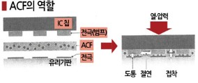 디스플레이 소재로 정착된 이방성 도전막(ACF)이 반도체 공정에서도 활용이 기대된다. 표, 그래프: <ACF의 역할> <화학저널 2023년 3월 20일> |