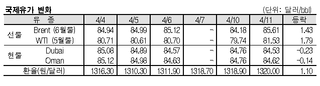 반면, 중국의 수요 회복 지연은 국제유가 상승 폭을 제한했다.