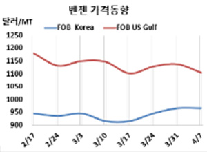 CFR China 985달러로 10달러 상승 … 한국산은 상승 실패