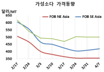 표, 그래프: <가성소다 가격동향> <화학저널 2023/04/14> |