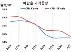 메탄올(Methanol)은 약세를 장기화하고 있다.