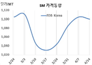 FOB Korea 1100달러로 5달러 하락 … 유럽 급등에 미국은 상승