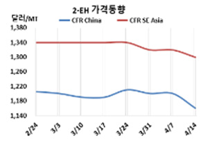2-EH, CFR China 1160달러로 40달러 하락 … DOP, 약세 전환
