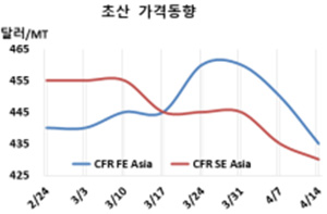 CFR FE Asia 435달러로 15달러 하락 … 중국 경기 침체로
