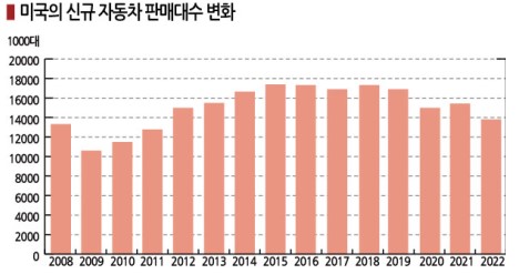 특히, 코로나19(신종 코로나바이러스 감염증) 팬데믹(Pandemic: 세계적 대유행)으로 2020년에는 자동차 판매대수가 1458만대로 감소했고 2021년 1508만대로 잠시 회복했으나 2022년 또다시 1390만대로 8.0% 줄어든 것으로 파악된다.