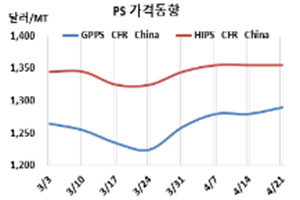 CFR China 1290달러로 10달러 상승 … HIPS는 보합세 형성