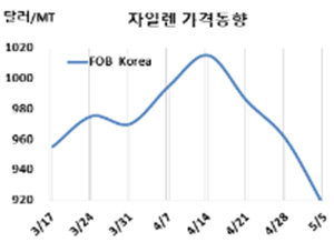 표, 그래프: <자일렌 가격동향> <화학저널 2023/05/11> |