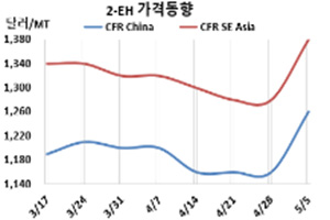 2-EH, CFR China 1260달러로 100달러 치솟아 … n-부탄올 급등