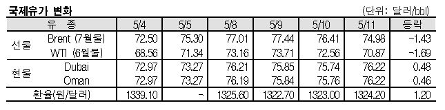 5월11일 국제유가는 경기 후퇴 가능성으로 하락했다.
