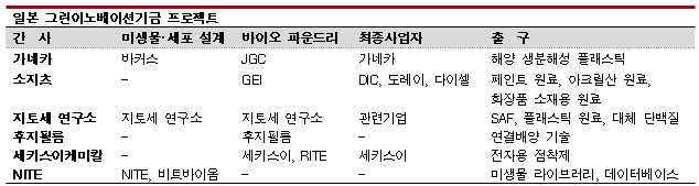 가네카(Kaneka), 후지필름(Fujifilm), 세키스이케미칼(Sekisui Chemical) 등 화학기업 다수가 지원 대상이며 탄소중립 관련 연구개발(R&D)이 본격화될 것으로 기대하고 있다.