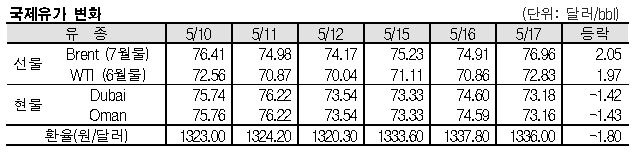 5월17일 국제유가는 미국 부채 한도 협상 낙관의 영향으로 상승했다.