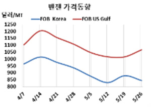 FOB Korea 845달러로 35달러 하락 … 미국가격 상승으로 수출 기대
