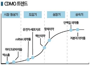 제약 메이저들의 프로세스 개발 및 위탁생산 확대, 제조기능을 갖추지 못한 신약 개발 벤처들의 투자 확대도 CDMO 시장 성장요인으로 작용하고 있다.