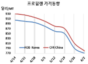 FOB Korea 770달러로 20달러 하락 … 미국은 50% 이상 폭락세