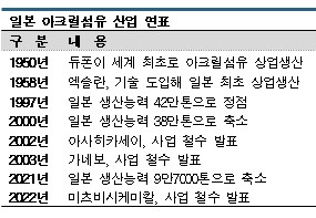 일본 아크릴섬유 생산기업은 도레이와 엑슬란 2사만 남게 됐다.