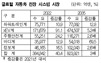 자동차 전장 시스템은 세계 시장이 크게 확대될 것으로 예상된다. 표, 그래프: <글로벌 자동차 전장 시스템 시장> <화학저널 2023/06/16> |