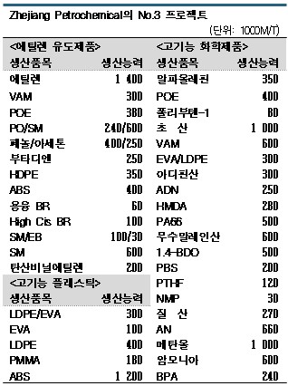 저우산에 에틸렌 생산능력 140만톤의 NCC를 건설하고 PA(Polyamide) 66, 생분해성 플래스틱 PBS(Polybutylene Succinate), POE(Polyolefin Elastomer) 사업화에 나설 계획이다.