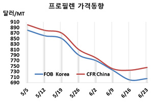 표, 그래프: <Propylene 가격동향> <화학저널 2023/06/27> |