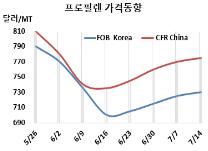FOB Korea 730달러로 5달러 상승 … 중국, PDH 160만톤 재가동