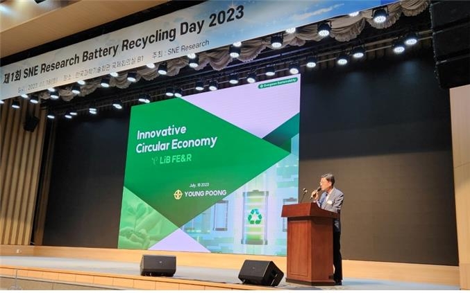 영풍은 한국과학기술회관에서 SNE리서치 주최로 열린 배터리 리사이클링 데이 2023에서 2차전지 건·습식 통합 공정 및 사업 추진 전략을 발표하며 신기술 개발 동향을 공개했다.