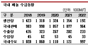 국내 생산량도 2018년 142만3212톤에서 2019년 131만7788톤으로 줄어든 후 130만톤대를 유지했으나 2022년 119만2338톤으로 감소했다.