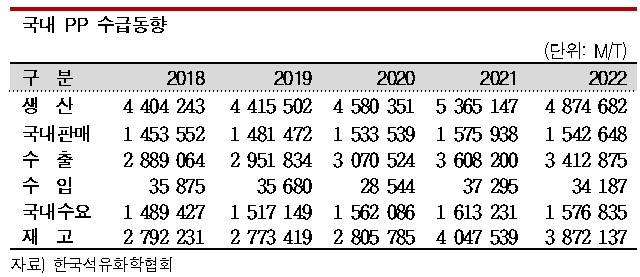 ICIS와 흥국증권 자료에 따르면, 중국은 2022년 PP 생산능력이 수요의 110%에 달했던 것으로 파악된다.