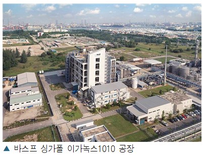 바스프는 2022년 아시아 및 중동 산화방지제 수요 증가에 대응하기 위해 싱가폴 주롱섬(Jurong)의 생산라인을 증설함으로써 산화방지제 이가녹스 1010 생산능력을 2배 확대했다.