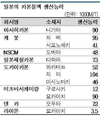 일본은 리먼 브라더스 사태와 함께 카본블랙(Carbon Black) 수입을 크게 늘렸으나 2015년 이후 수입을 줄이는 대신 자체 생산을 확대하고 있다.