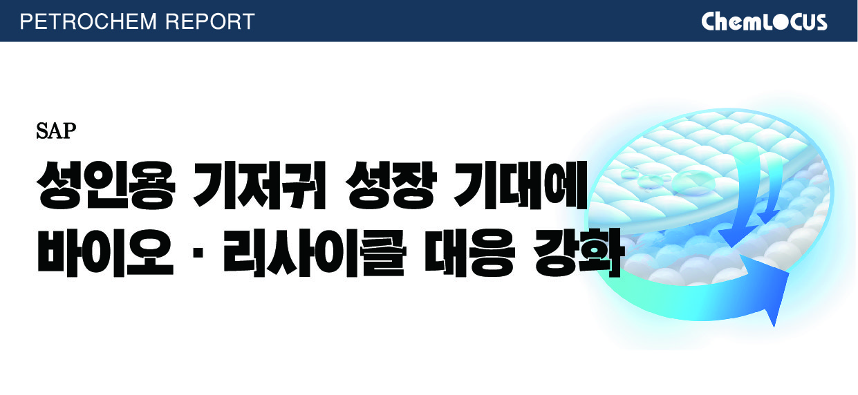 SAP(Super Absorbent Polymer)는 자체 무게의 수백배에서 1000배 가까운 물을 흡수할 수 있는 소재로 유아용 기저귀에 이어 성인용 기저귀가 성장을 이끌고 있다.