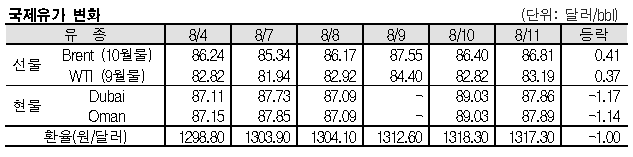 브렌트유, 86.81달러로 0.41달러 올라 … 두바이유는 87.86달러