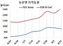 FOB Korea 955달러로 20달러 떨어져 … 미국 폭등에 유럽 상승