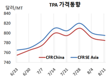 표, 그래프: <TPA 가격동향> <화학저널 2023/08/17> |