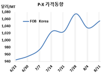 표, 그래프: <P-X 가격동향> <화학저널 2023/08/17> |