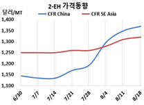 CFR China 1370달러로 20달러 올라 … NBA·무수프탈산·DOP 상승