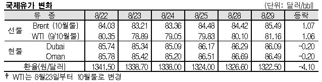 8월29일 국제유가는 미국 멕시코만 허리케인 접근의 영향으로 상승했다.