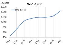 FOB Korea 1055달러로 20달러 올라 … 유럽은 대폭등 후 하락세